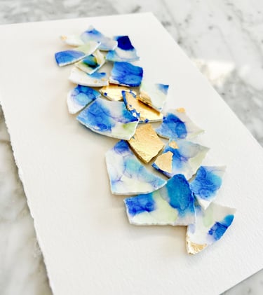 Each piece I create is an honest reflection of life—imperfect, vibrant, and full of possibility. Inspired by nature and grounded in authenticity, I turn fragile fragments into joyful, one-of-a-kind works of art.