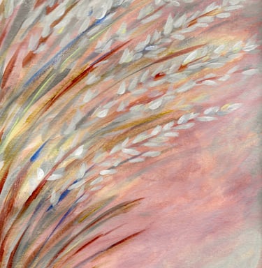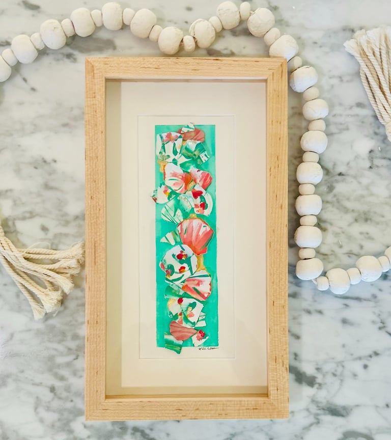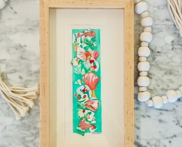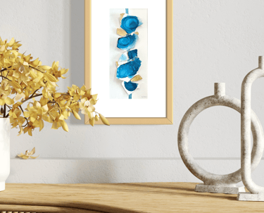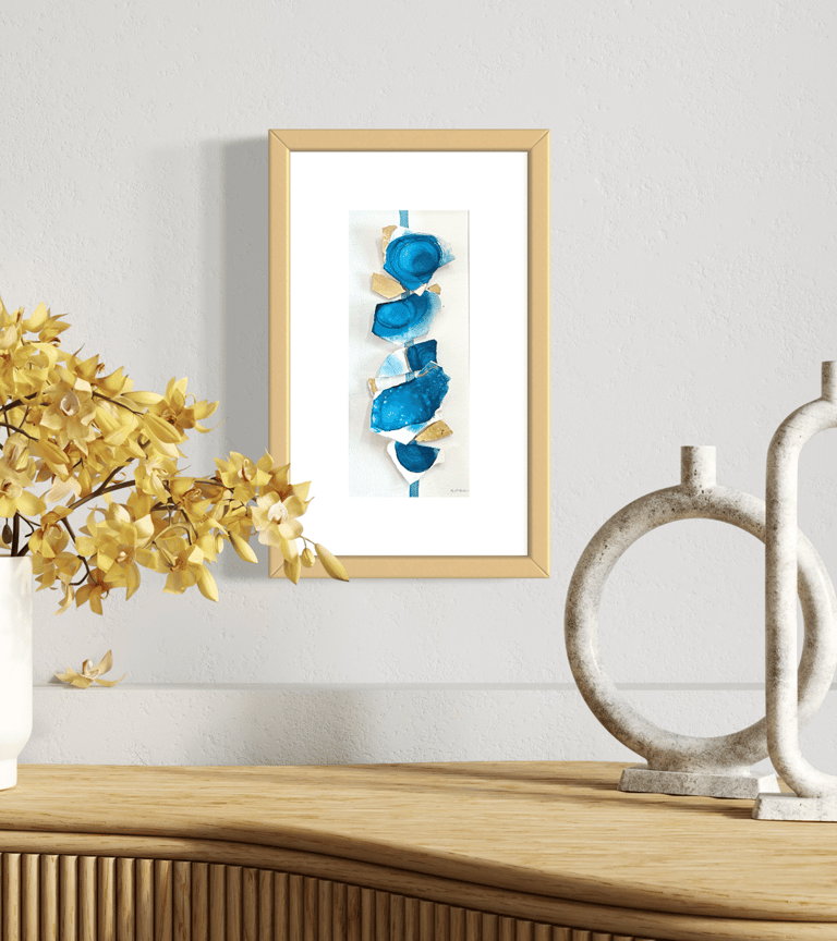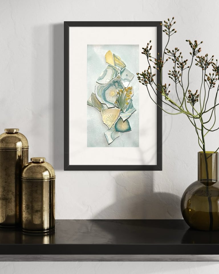This series is inspired by the living rhythm of the riverbanks, where every reflection tells a story of connection between earth and water. Created with hand-painted ostrich eggshells, ink, and gold leaf, each piece captures the gentle movement and balance found in nature’s small moments. The beauty that exists right in front of us when we slow down and look. Layers of colour echo riverbanks, wild florals and shifting light. Framed and ready to hold space.